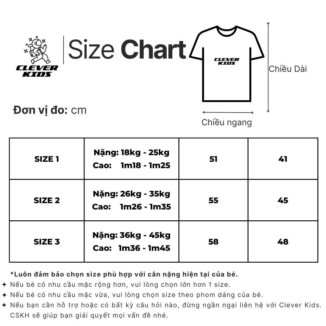 - Sản phẩm: Áo thun Clever Kids cotton premium cao cấp cho bé từ 15kg - 45kg